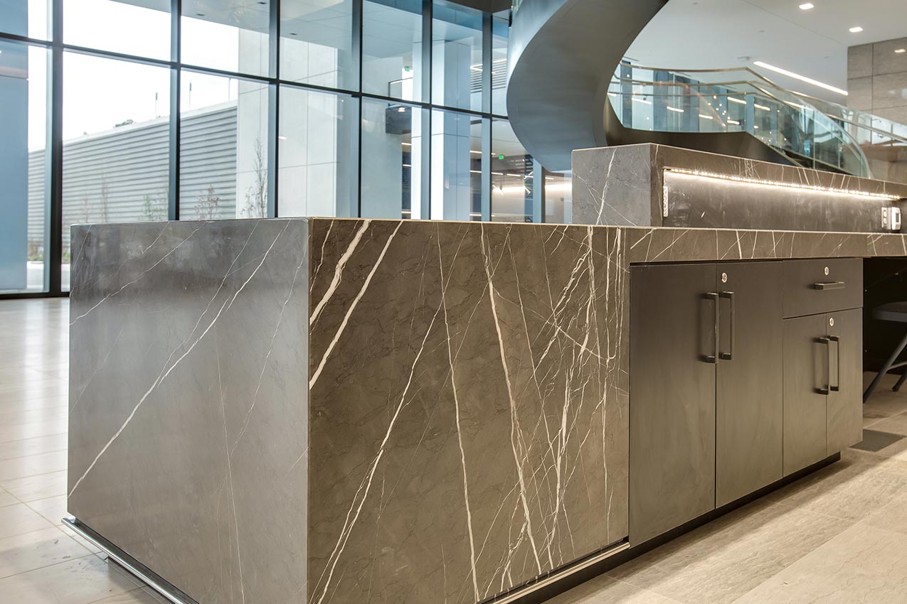 Surface One fabricates countertops and surface materials for a variety of commercial applications. Our surfaces are featured in many local retail locations of national name-brand companies. Our products have been used in a multitude of applications and have been shipped all over the World for commercial and industrial projects. Surface One has procured and fabricated specialty surfaces to meet the needs of retail stores, healthcare facilities, medical schools, government buildings, offices, financial institutions, stadiums, restaurants, food prep areas, hospitality, veterinary hospitals, clinic, schools, and universities.